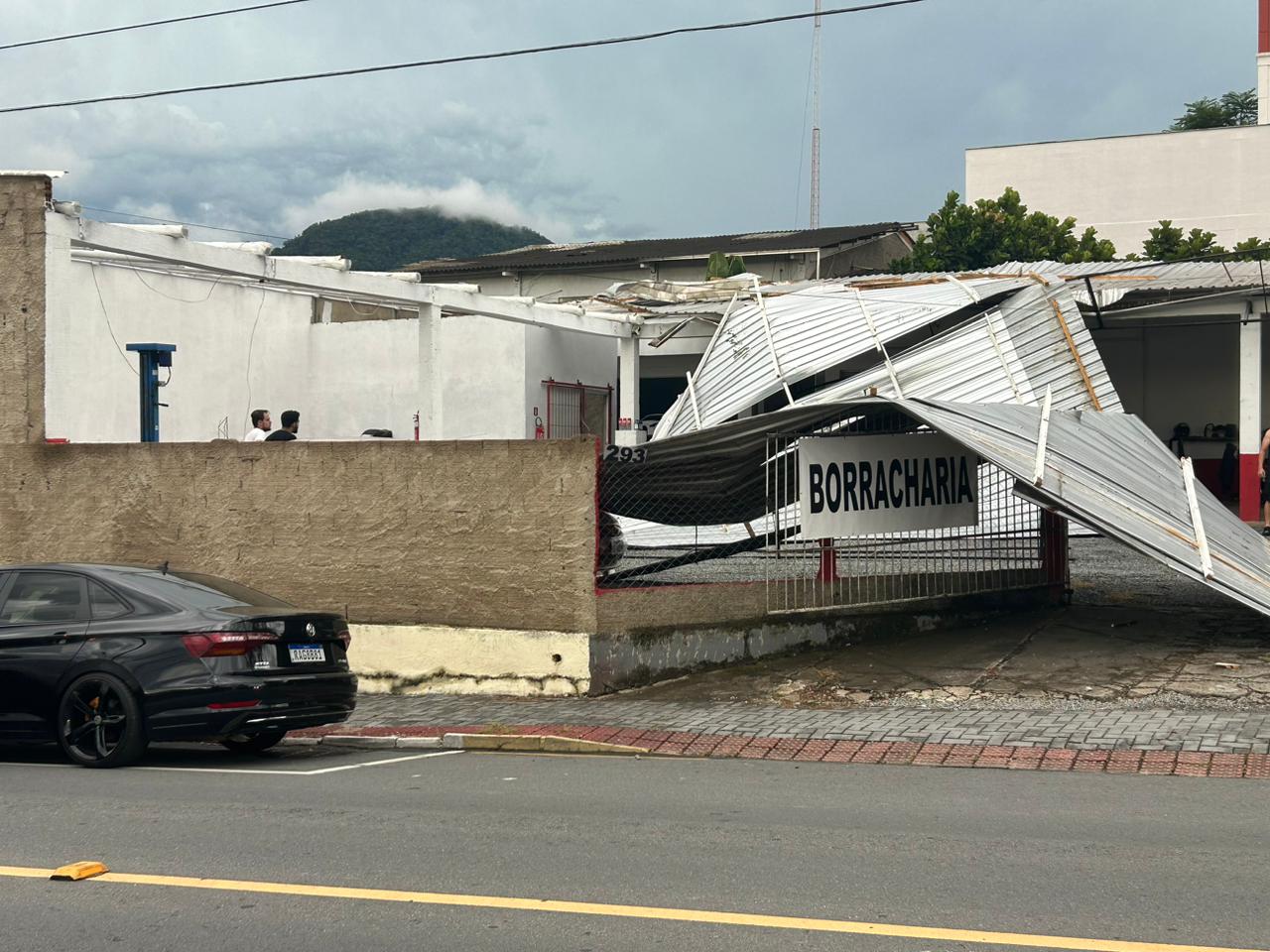 Ventos de 70 km/h provocaram queda de árvores e destelhamentos na cidade do Norte catarinense